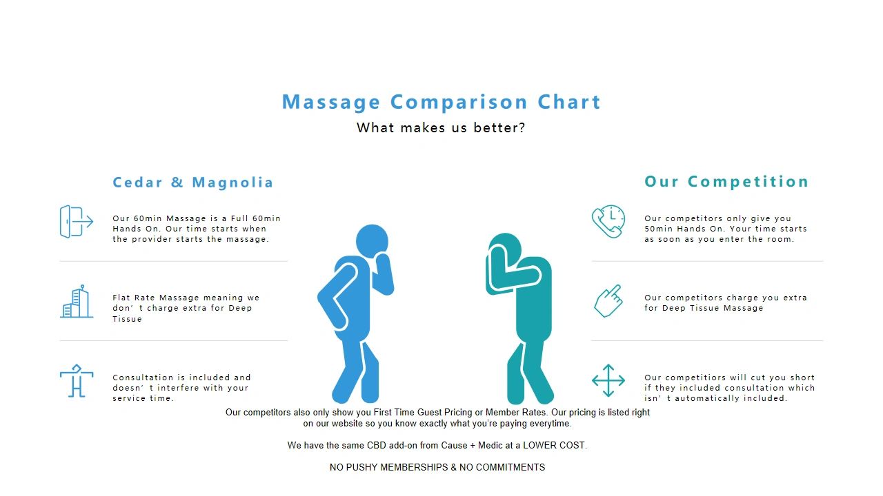 We offer a true one of a kind energy work experience at Cedar & Magnolia Day Spa. All of our Massage Therapists are Licensed, Trained, & Certified in every service they offer with years of experience and knowledge. We also ensure you never get shorted and always get your full service time you see below.